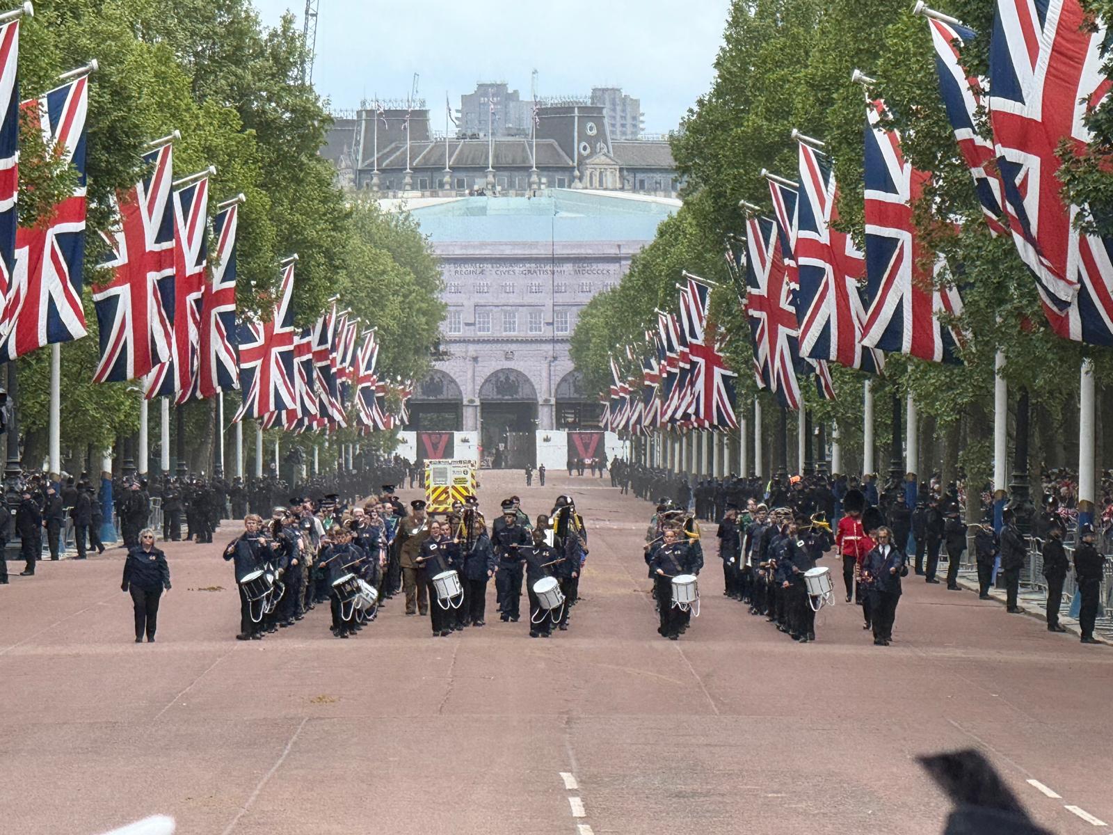 The week of national events began with a ceremony on Parliament Square and a procession down The Mall and past Buckingham Palace, with the uniformed youth contingent being led by the London Massed Bugle Band and BB members also marching in the contingent itself.