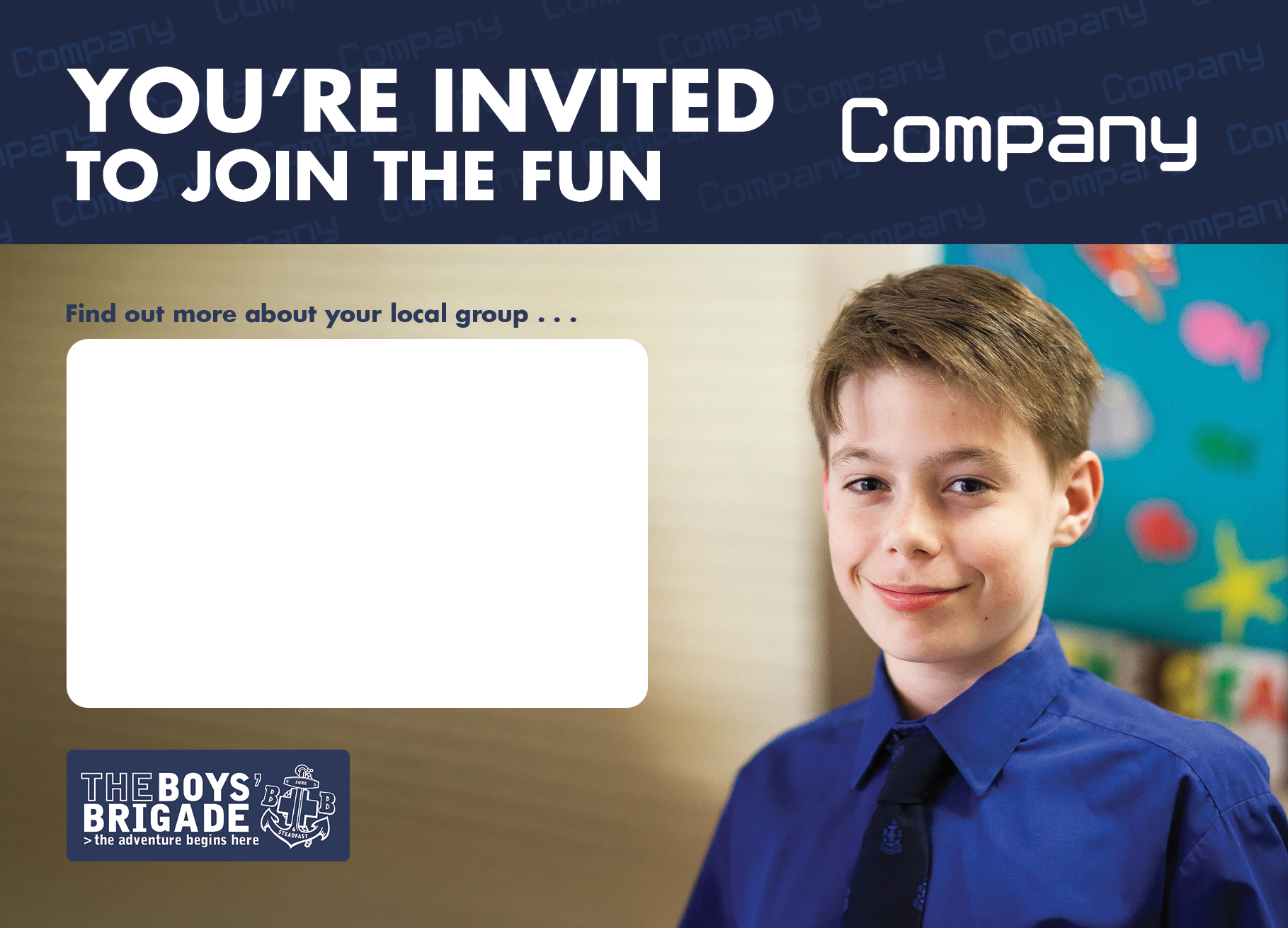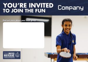 These could provide general information about your Company, or be used as part of a taster/friends night to invite children or young people along to a specific night (day/time).