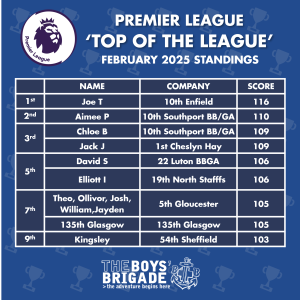 A registered Charity in England & Wales (305969) and Scotland (SC038016). Copyright © 2025 - The Boys' Brigade - All rights reserved.