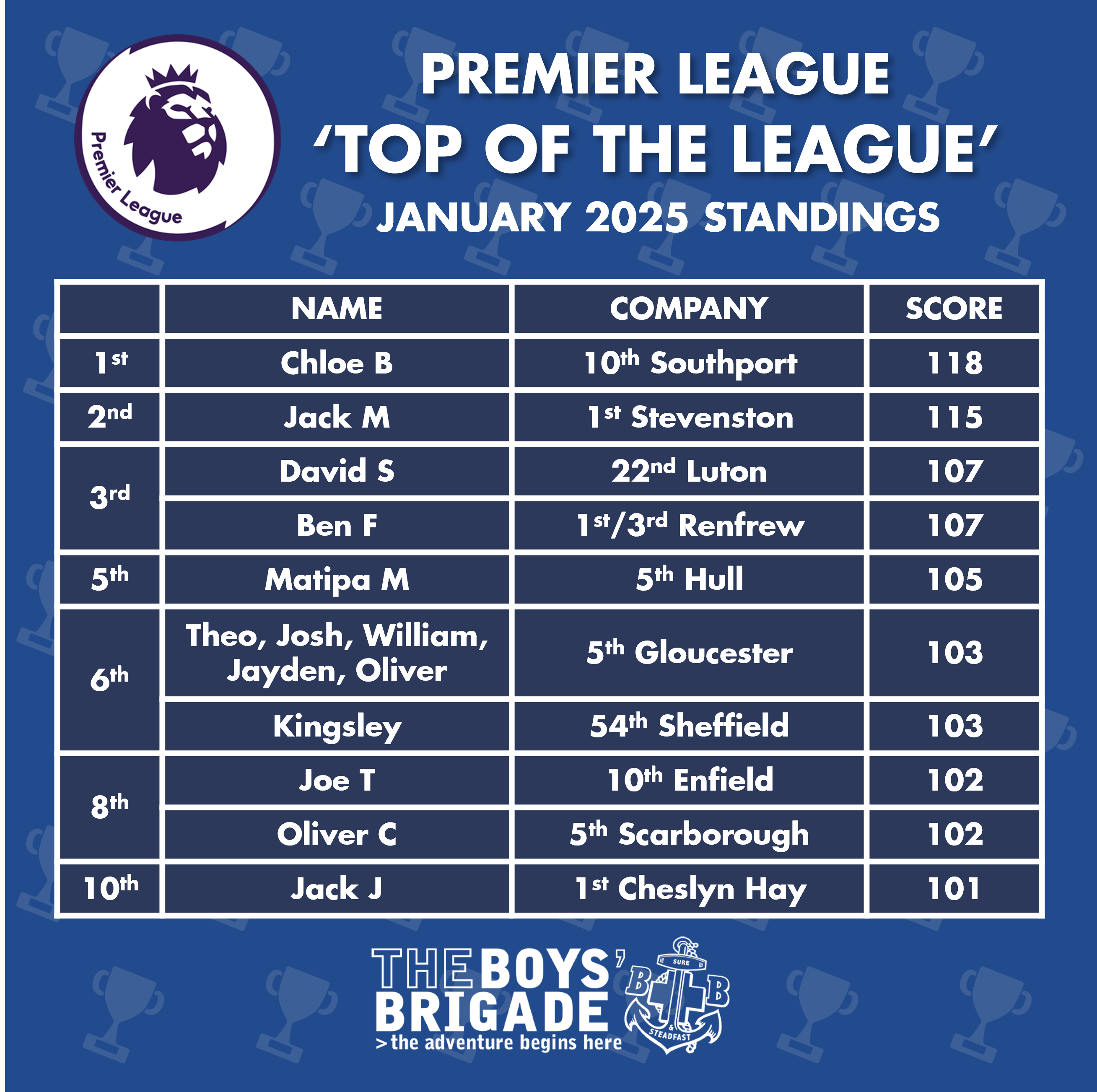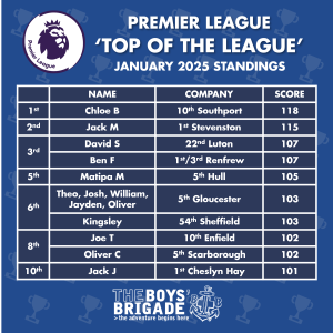 A registered Charity in England & Wales (305969) and Scotland (SC038016). Copyright © 2025 - The Boys' Brigade - All rights reserved.