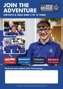 A registered Charity in England & Wales (305969) and Scotland (SC038016). Copyright © 2025 - The Boys' Brigade - All rights reserved.